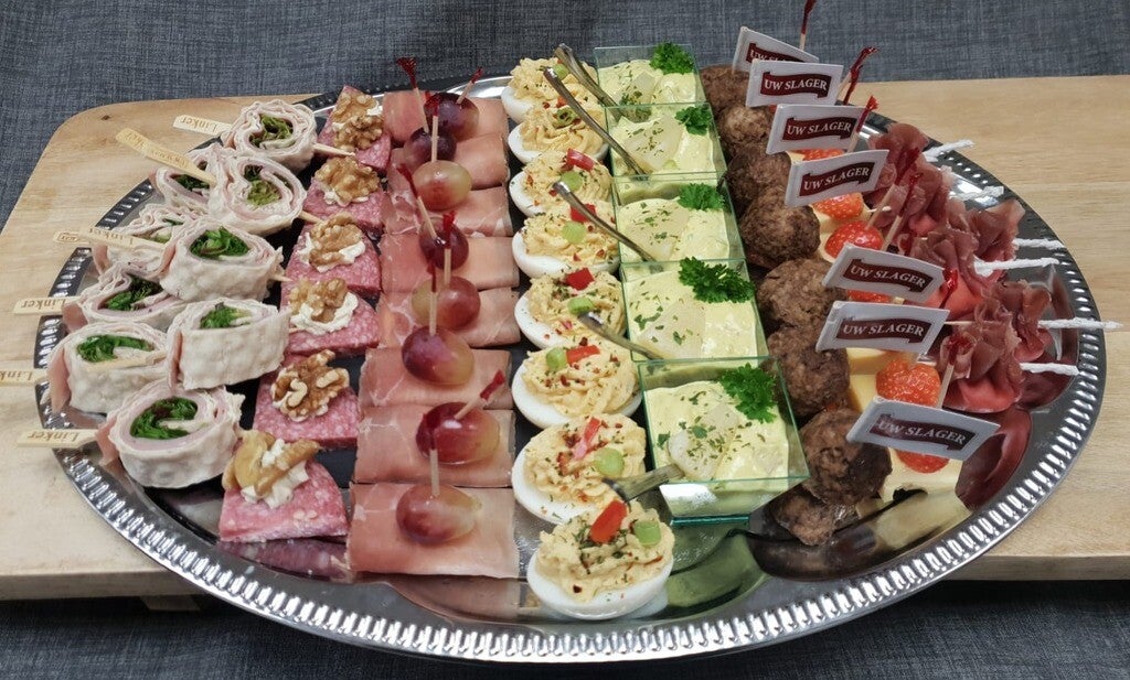 Gevulde eitjes, gevulde tomaatjes, wraps, toast, en nog veel meer. Wij bereiden de hapjes met diverse Charcuterie, Vis, en Kaassoorten, dit alles feestelijk afgewerkt met garnituur.
